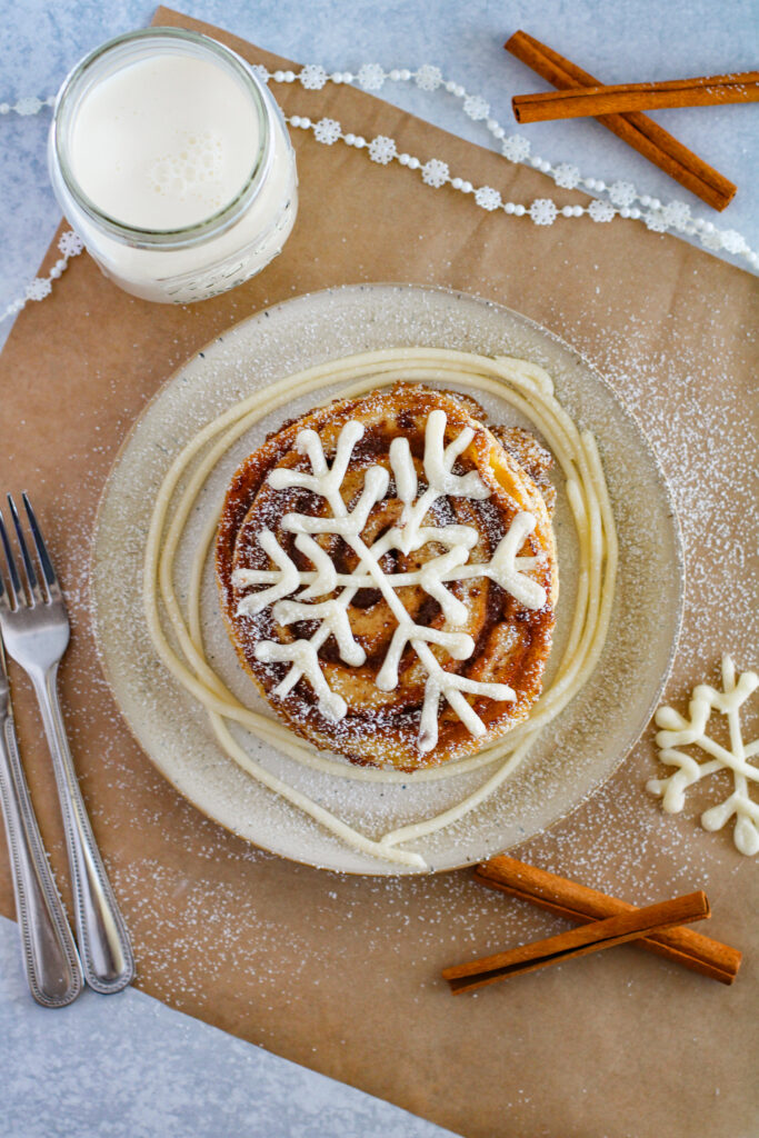 Cinnamon Swirl Pancakes with Cream Cheese Icing are a decadent breakfast treat perfect for chilly mornings or festive occasions. Featuring fluffy pancakes infused with a rich cinnamon-sugar swirl, they are topped with a creamy, tangy cream cheese icing that can be piped into whimsical snowflake designs for a wintery touch. These pancakes are easy to make using pantry staples and add a playful, artistic flair to your breakfast table.